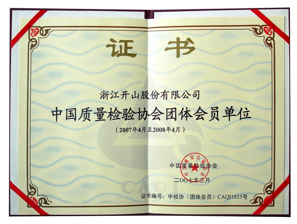 開(kāi)山空壓機(jī)榮獲中國(guó)質(zhì)量檢驗(yàn)協(xié)會(huì)團(tuán)體會(huì)員單位